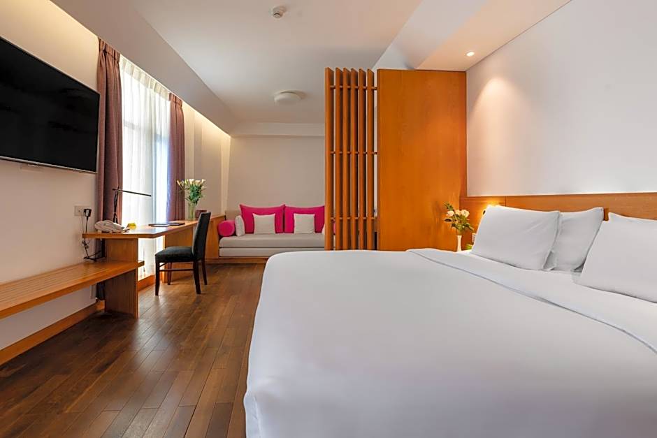 Suites are more spacious and have a separate living area with a sofa. Most rooms feature a private balcony with views of the city. (Subject to request and availability.)